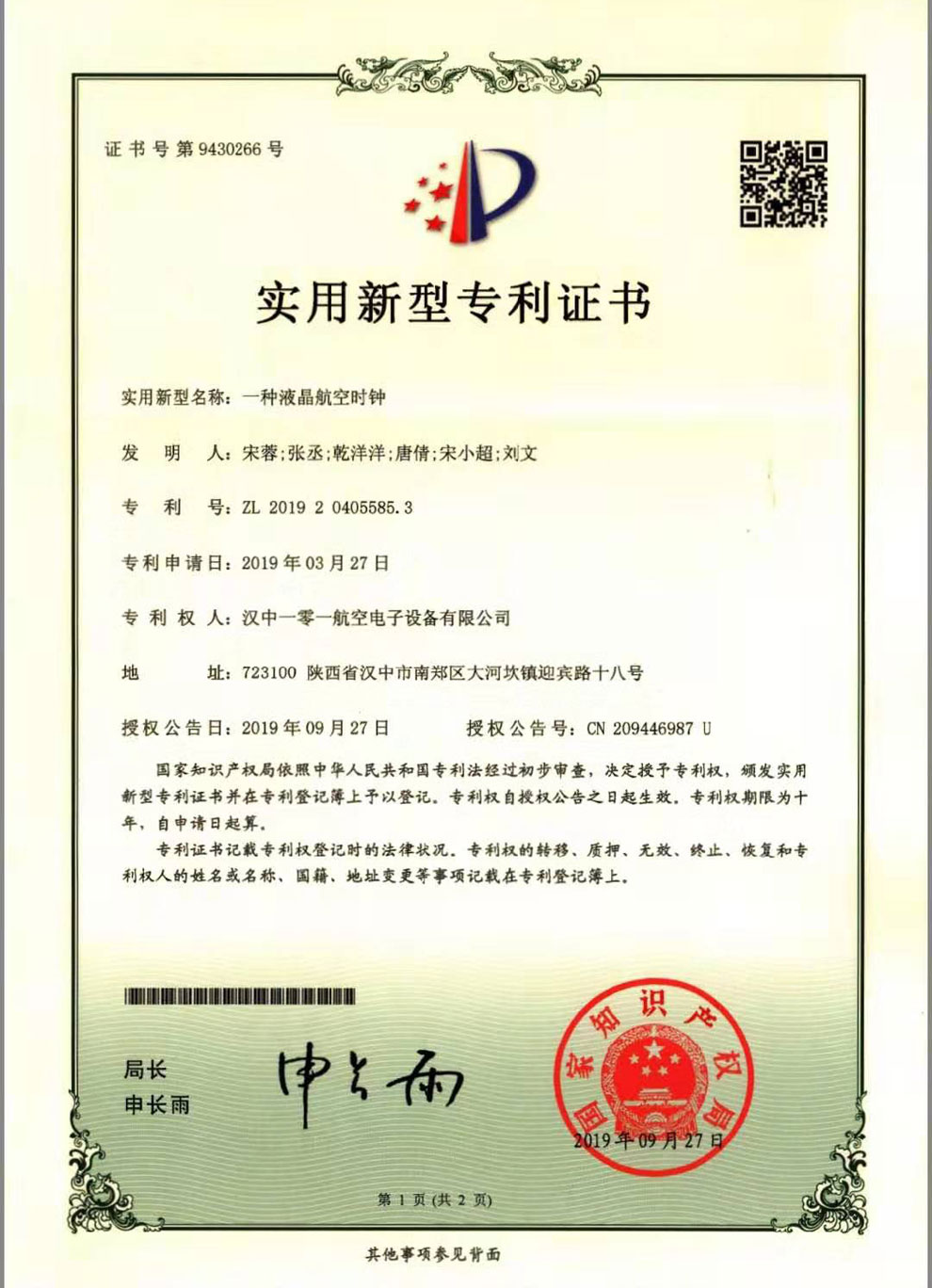 近期,中航電測一零一公司“一種液晶航空時鐘”取得國家知識產權局頒發的實用新型專利證書,電源參數顯示系統取得航空工業集團科技進步三等獎,標志著該公司專利和科技成果實現“零”突破。