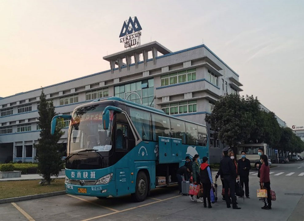 復(fù)工第二周,點(diǎn)對(duì)點(diǎn)旋即安排專(zhuān)車(chē)從廣西多個(gè)縣接送員工返崗,半百員工迅速到位。
